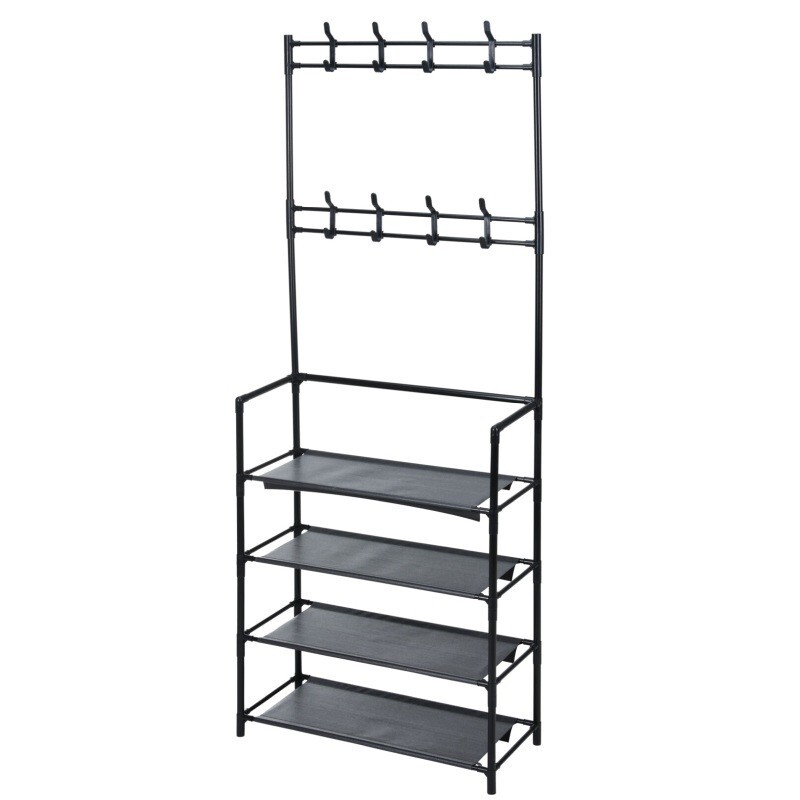 Věšák do předsíně s borníkem - 4 police.Materiál: kovBarva: černá Rozměr 60 x 26 x 155 cm przeczytaj całość