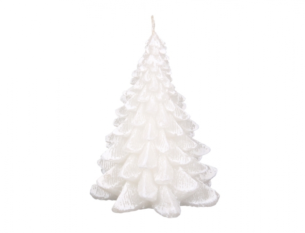 Bílá figurální svíčka ve tvaru stromku. Průměr: 9 cm, výška: 13 cm. przeczytaj całość