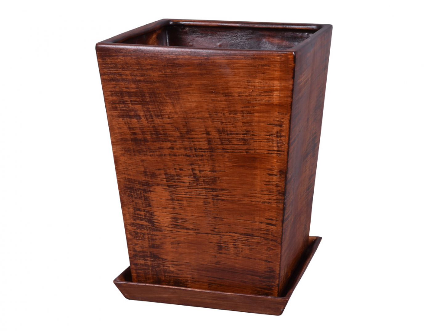 Květník KUPKA SQUARE WOOD+podmiska keramický mat 20x20x28cm