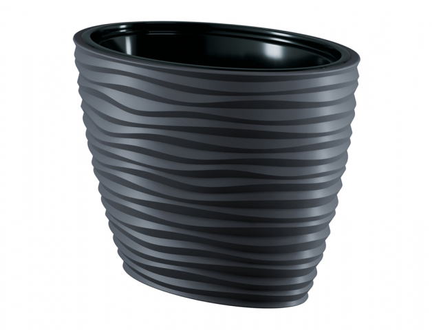 Moderní plastový obal ve tvaru elipsy s jemnými vlnkami po celém obvodu. Součástí je vnitřní vložka. Je mrazuvzorný a odolný vůči UV záření. Barva: antracitová. Rozměry: 60 x 40 cm, výška: 40 cm. przeczytaj całość