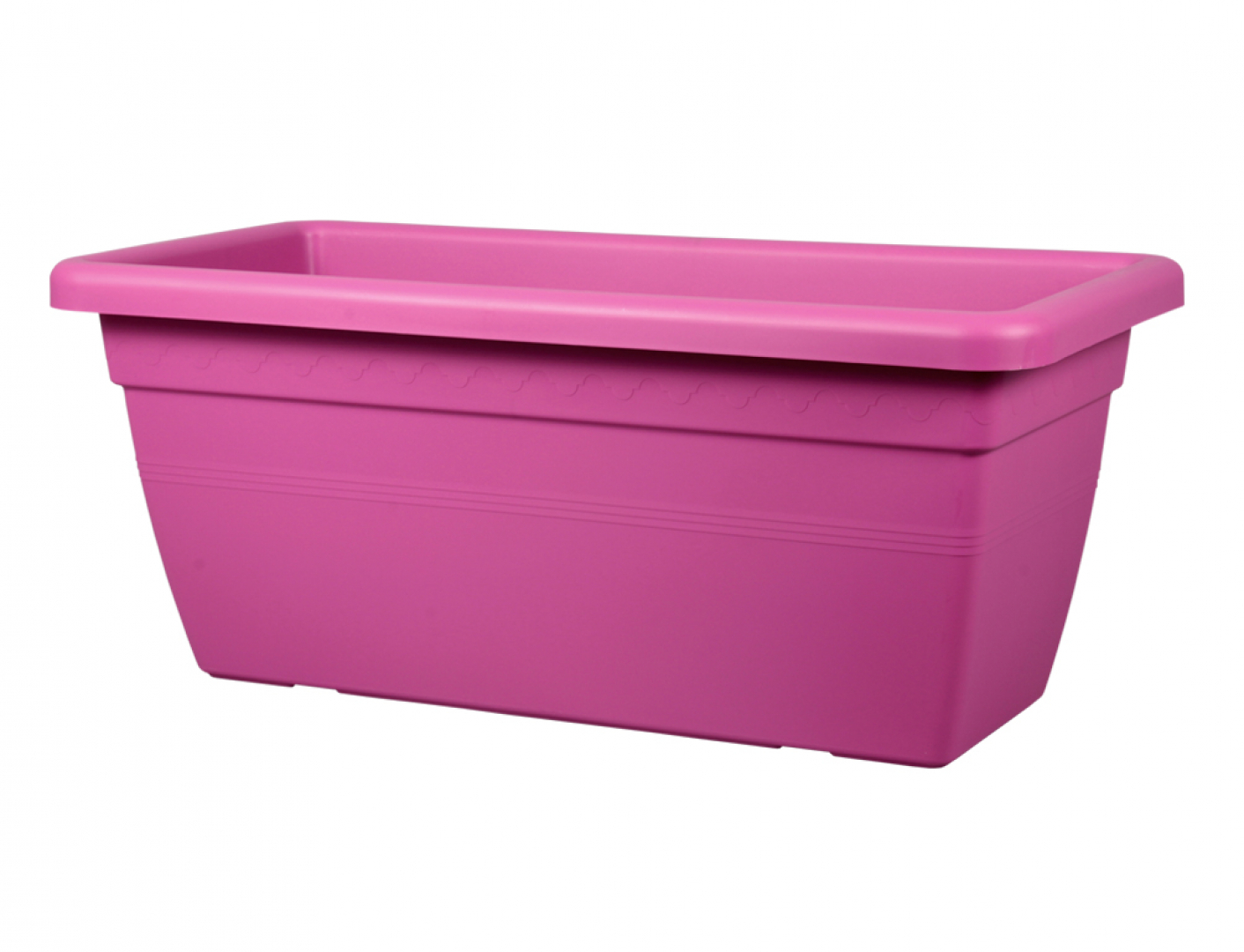 Polypropylenový růžový matný kónický truhlík se širším ohnutým lemem směrem ven. Používá se pro živé rostliny v interiéru, v zimních zahradách i v exteriérech. Vyroben z pryskyřice odolné vůči nárazům, mrazu (až - 20st.C), UV záření a je kompletně recyklovatelný. Šířka: 80 cm, výška: 34 cm, hloubka: 39 cm. Vhodnou podmiskou je AKEA, NG 12913rů.