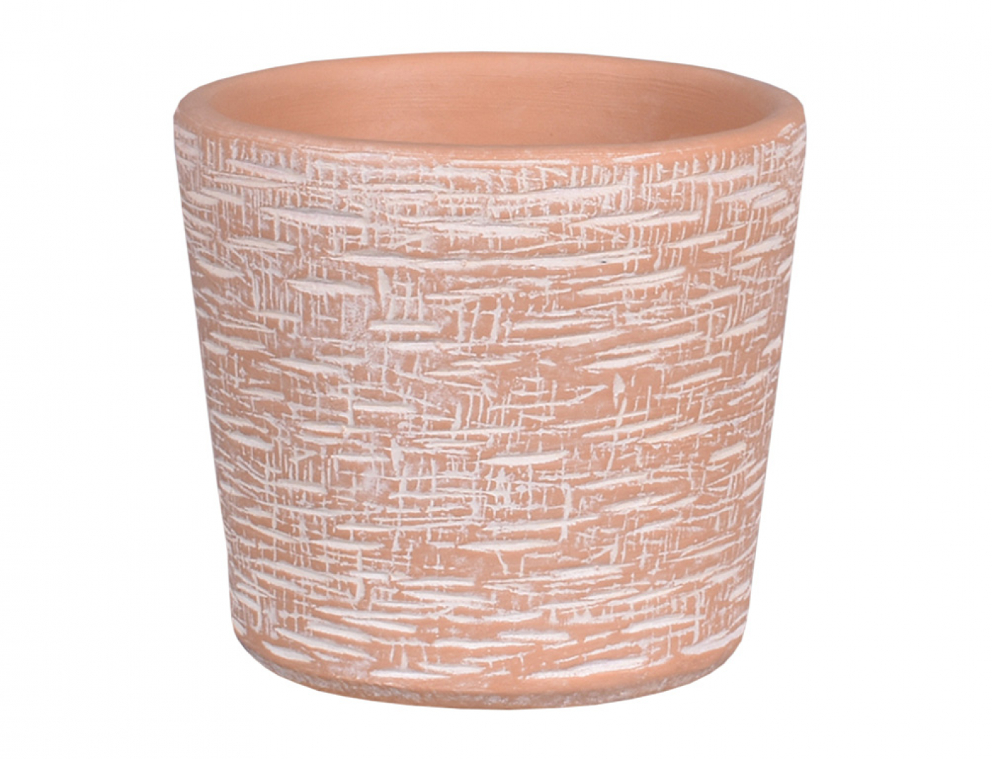 Matný, keramický, strukturovaný obal na květináč. Hlavním cílem designu je přírodní vzhled, který začíná výběrem barev, je podpořen texturou tkaniny a končí robustním zpracováním. Zejména vynikne vkombinaci se svěže zelenými rostlinami. Kónického tvaru, kruhového půdorysu. Vhodný do interiéru. Průměr: 16cm, výška: 15cm. Barva: terakota.