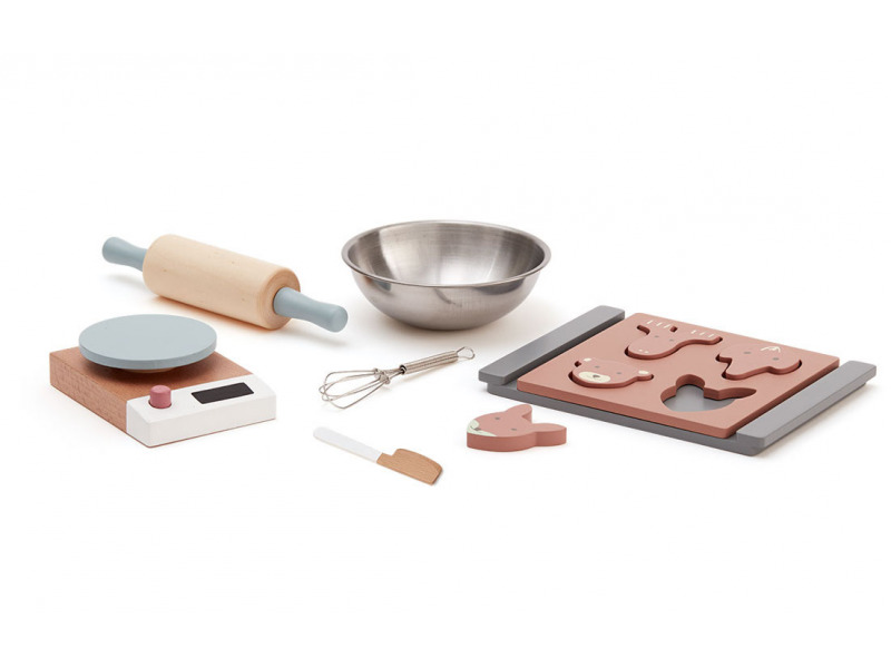 Sada potřeb a doplňků na pečení v krásném dřevěném provedení pomůže v dětském bistru připravit pečené cukroví.Sada na pečení je součástí ucelené kolekce dřevěných hraček Kids Concept Bistro.Vhodné pro děti od 3 let. przeczytaj całość