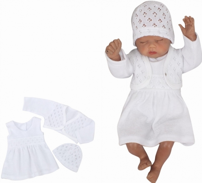 Z&Z 3-dílná pletená sada šatičky, bolérko a čepička - bílá, vel. 74; 74 (6-9m)