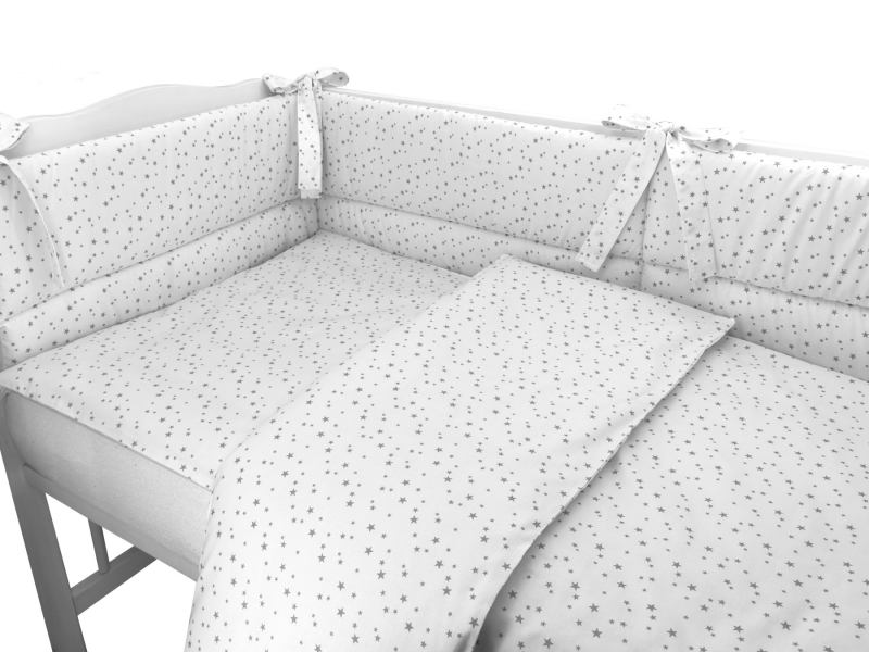 3-dílná sada Mantinel s povlečením Mini Hvězdičky, bílá/šedá; 120x90