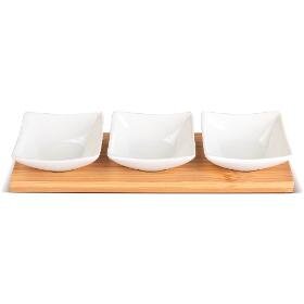 MiskyLamart LT9217Sada misek na dřevěném podnosuPorcelánová série pro každodenní užitíSada obsahuje 3x misku a dřevěný podnosSnadná údržba a čistěníRozměr 26 x 8 x 1 cmMateriál porcelán, bambus przeczytaj całość