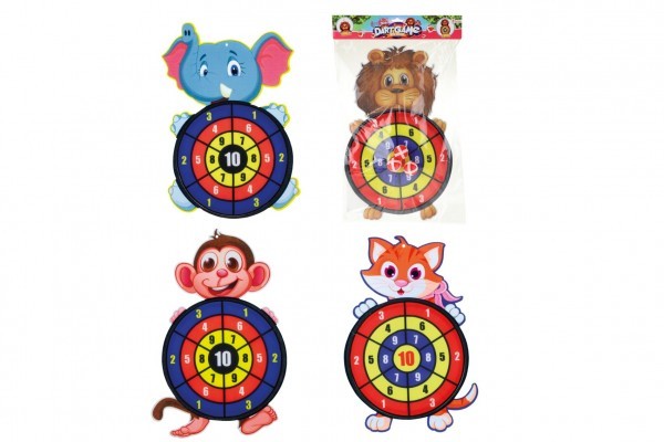 Terč na suchý zip se zvířátky + 3 míčky 27cm - 1 kus