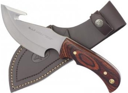 Muela GRIZZLY-12R lovecký nôž s vyvrhovacím hákom 12 cm, drevo Pakka, kožené puzdro