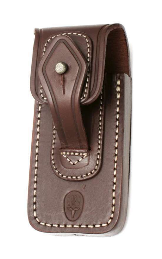 Kožené puzdro Muela F/NAVALIA-MAR v hnedej farbe s bielym prešívaním, sa zapína pomocou pracky. V spodnej časti prednej strany je vyrazené logo firmy.Puzdro je vhodné pre stredne veľké zatváracie nože Navalia. przeczytaj całość