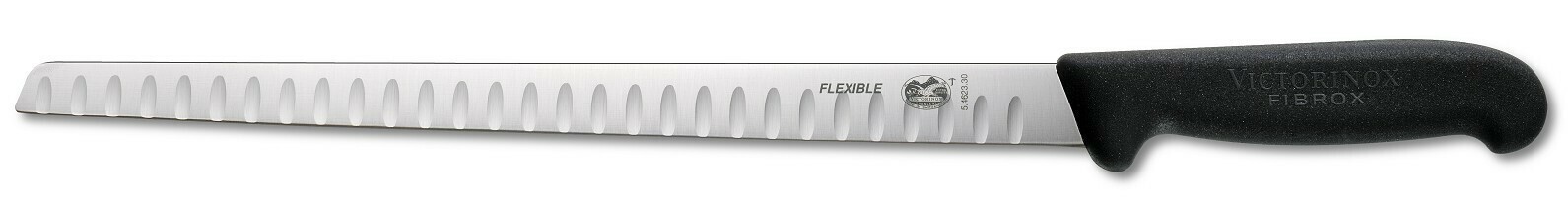 Posiada giętkie, elastyczne ostrze o gładkiej krawędzi długości 30 cm ze stali nierdzewnej oraz wgłębienia zapobiegające przyklejaniu się plastrów podczas krojenia. Rękojeść wykonana jest z czarnego tworzywa Fibrox, które było przełomowe dla Victorinox. Można ją sterylizować w temperaturze do 150 °C i spełnia wymagania rozporządzenia (WE) 1935/2004.