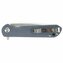 Rukoväť je z odolného materiálu G10 šedo-modrej farby, s dierkou na šnúrku a sponou na vrecká.