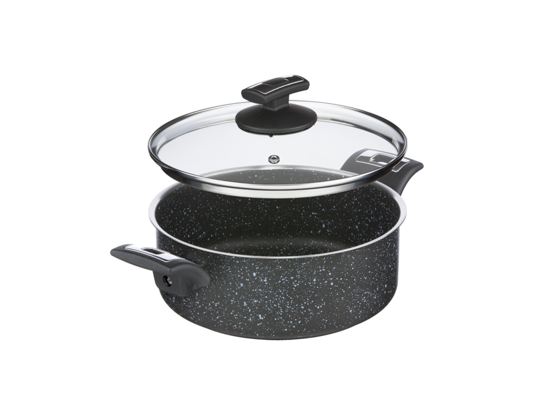 Nádobí Black Granitec od českého výrobce. Vzhled černo-šedého granitu ozdobí vaši kuchyni. Masivní nádobí s nepřilnavým povrchem který je vyztužený keramickými částicemi. przeczytaj całość