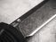 Z ostrzem o gładkiej krawędzi ze stali narzędziowej D2 z ciemnym wykończeniem Stonewash, jest obsługiwany mechanizmem przesuwanym na tylnej stronie rękojeści.