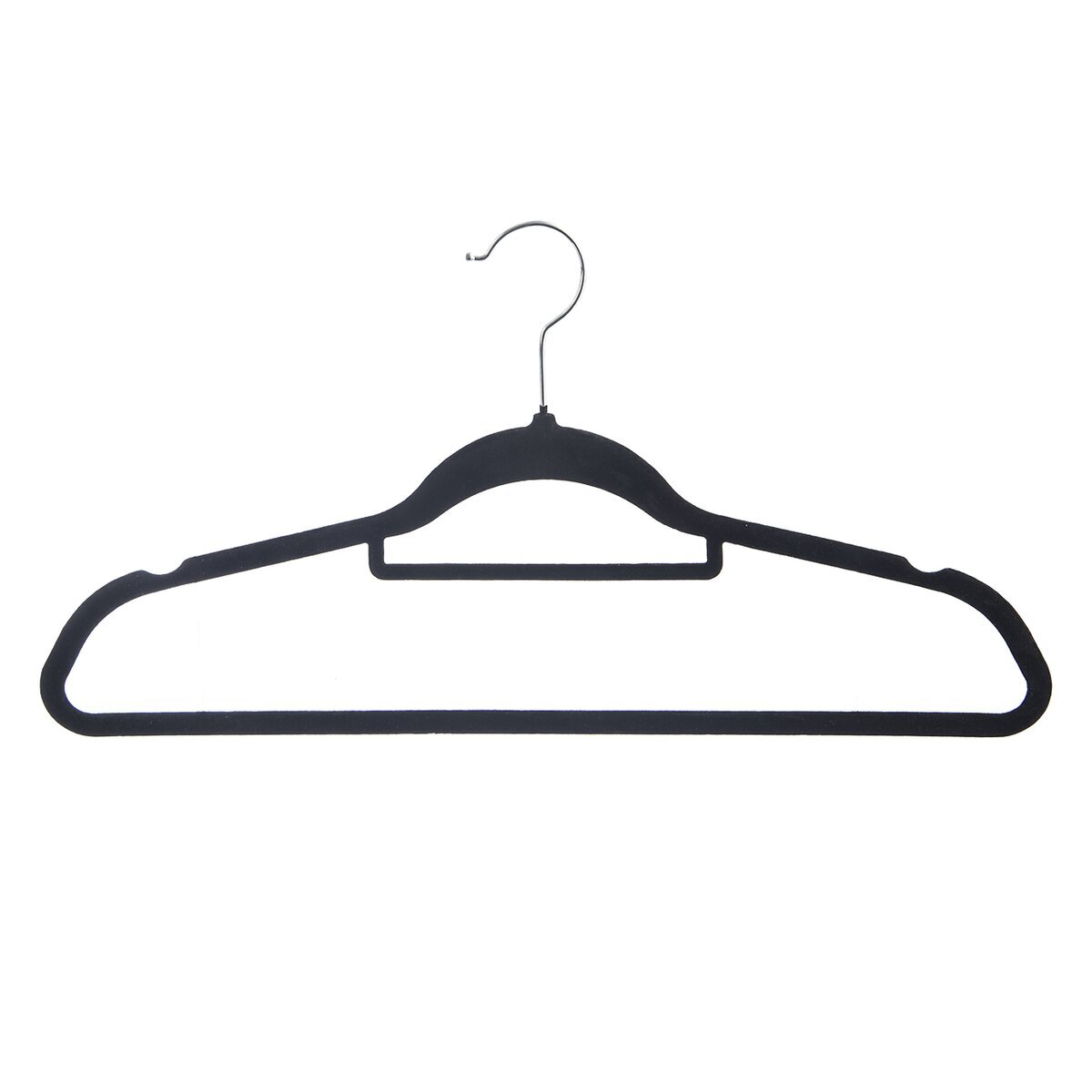 Wieszak garderobiany porządkuje ubrania w szafie i garderobie. Zestaw 5 szt. Pomieści koszulki, bluzki, koszule. Jest ukształtowany także pod wąskie ramiączka sukien i topów lub pętelki spódnicy, możliwość zawieszenia spodni na dolnym drążku, część pod haczykiem umożliwia przechowywanie krawata lub apaszki. Obrotowy metalowy haczyk. Jest wąski, dzięki czemu oszczędza miejsce w szafie lub garderobie. Dzięki welurowej powłoce ubrania nie zsuwają się z wieszaka. Materiał: tworzywo ABS, welurowa powłoka, metal. Wymiary: 45x0,5x23,5 cm.