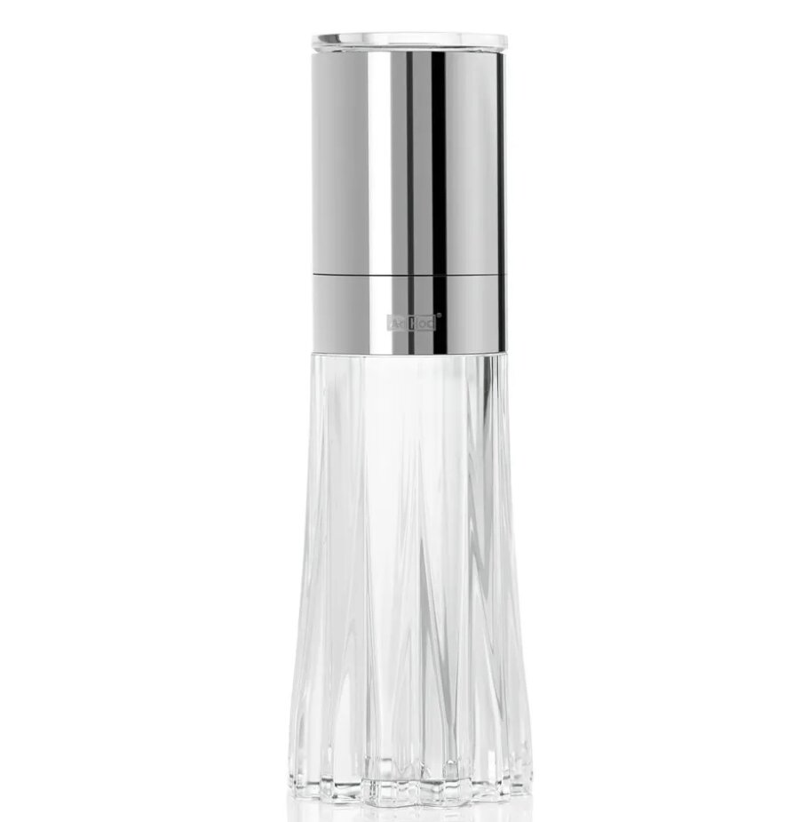 Mlynček na korenie a soľ AdHoc CRYSTAL s čírim moderným dizajnom, vyrobený z kombinácie akrylu a nerezovej ocele, s patentovaným keramickým mlecím mechanizmom CeraCut®.