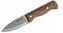 S krátkou pevnou čepeľou s hladkou hranou z uhlíkovej ocele 1075, ktorá je náchylná na hrdzavenie, no pravidelnou údržbou jej možno predísť.
