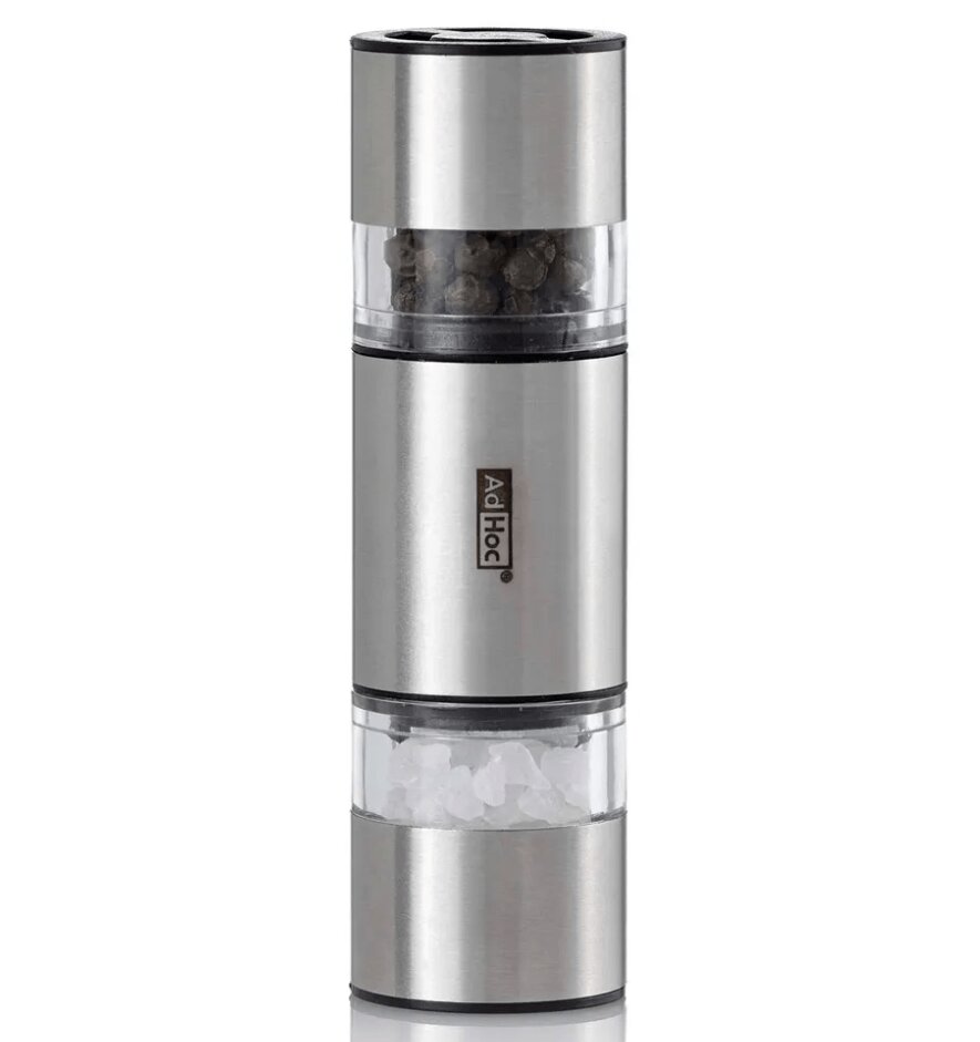 Dvojitý mlynček na korenie a soľ AdHoc DUOMILL MINI je najmenším mlynčekom, je vyrobený z nehrdzavejúcej ocele a akrylu.