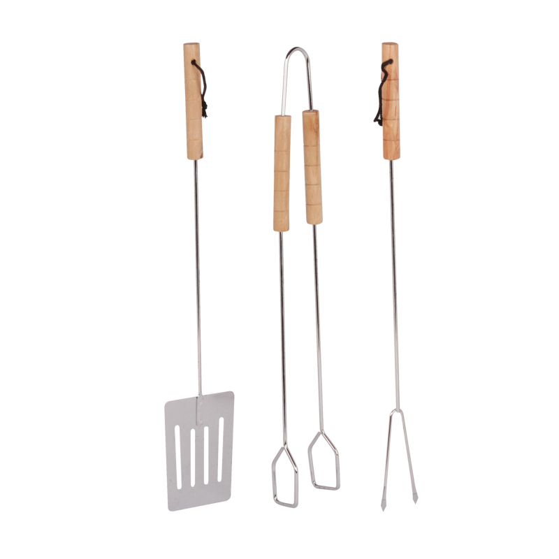 Grilovací sada nářadí obsahuje vidličku, obracečku a kleště. Je vyrobena z oceli a rukojeti ze dřeva. Ideální pomocníci pro vaše grilovací akce s přáteli.  przeczytaj całość