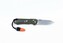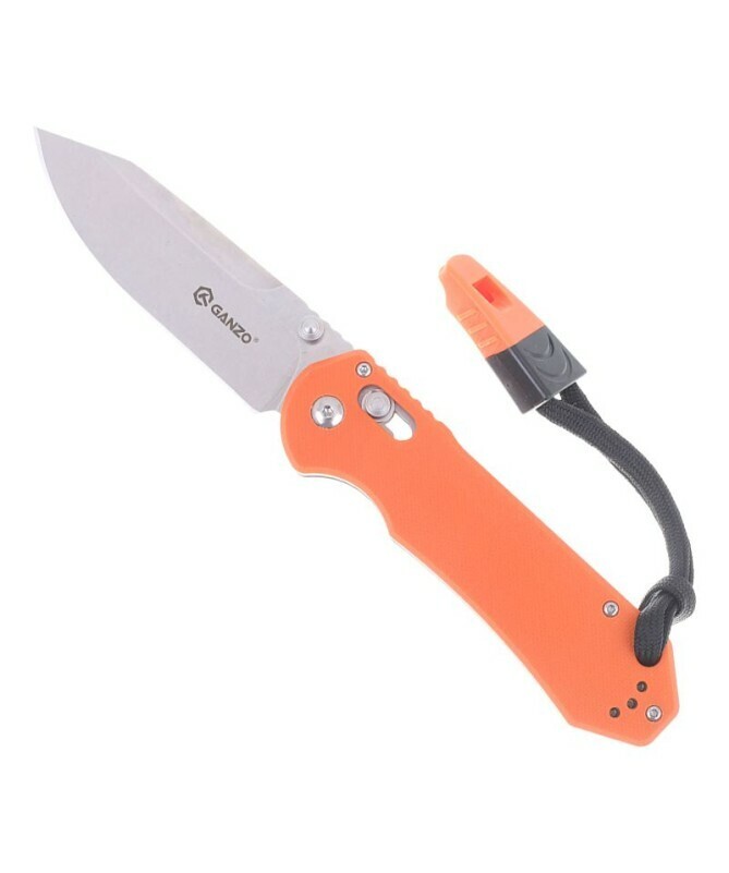 Rukoväť je z odolného G10 oranžovej farby, s textúrou na pohodlné uchopenie. S otvorom so šnúrkou a píšťalkou. So sponou na vrecká.