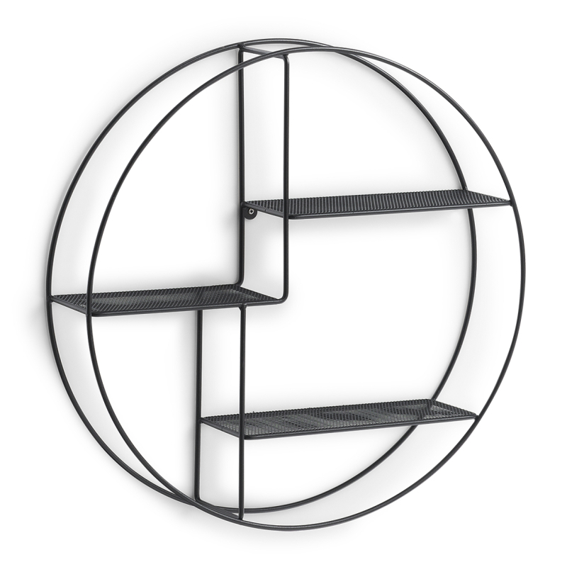 Praktická kovová polička z černého masivního kovu o průměru 55cm, hloubka poličky je 12cm, maximální zatížení 3kg, polička se skládá ze tří poliček, které jsou vhodné pro vaše dekorační předměty do jakékoli domácnosti či podniku.  przeczytaj całość