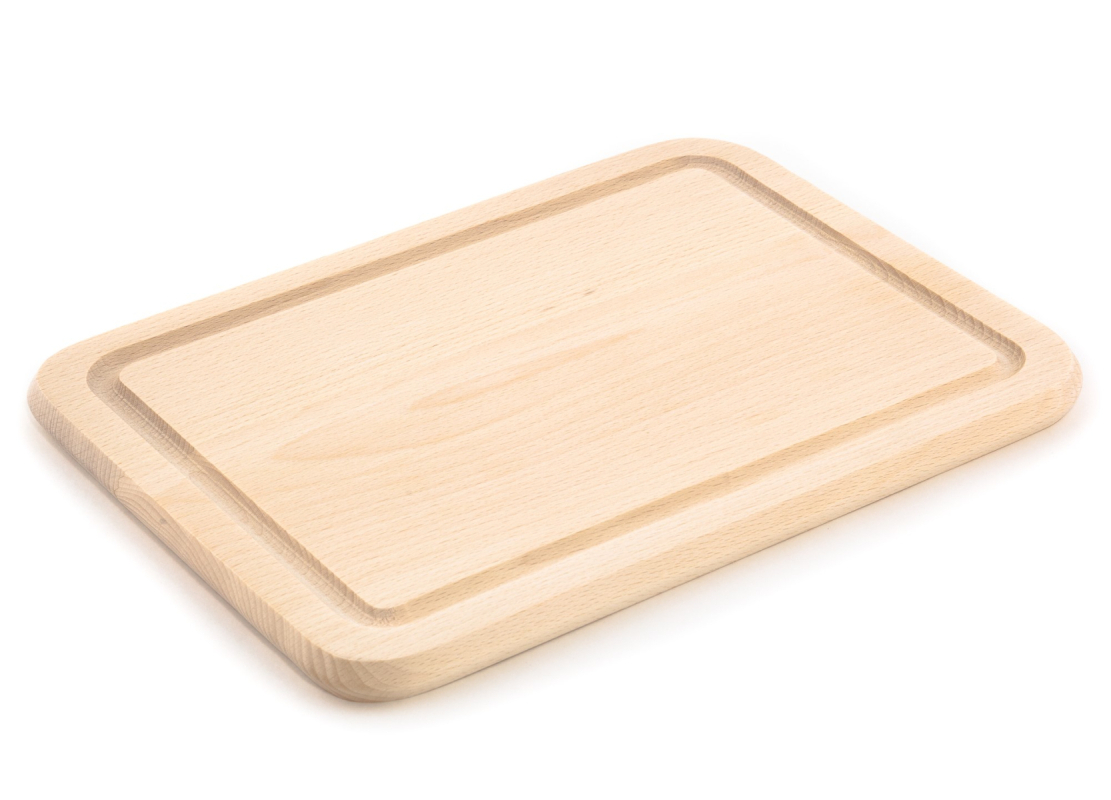 Drewno bukowe najwyższej jakości. Delikatnie szlifowana powierzchnia. Krawędzie obwodowe zaokrąglone. Obwodowa bruzda do zbierania płynów. Wymiary 305 x 230 x 16 mm przeczytaj całość