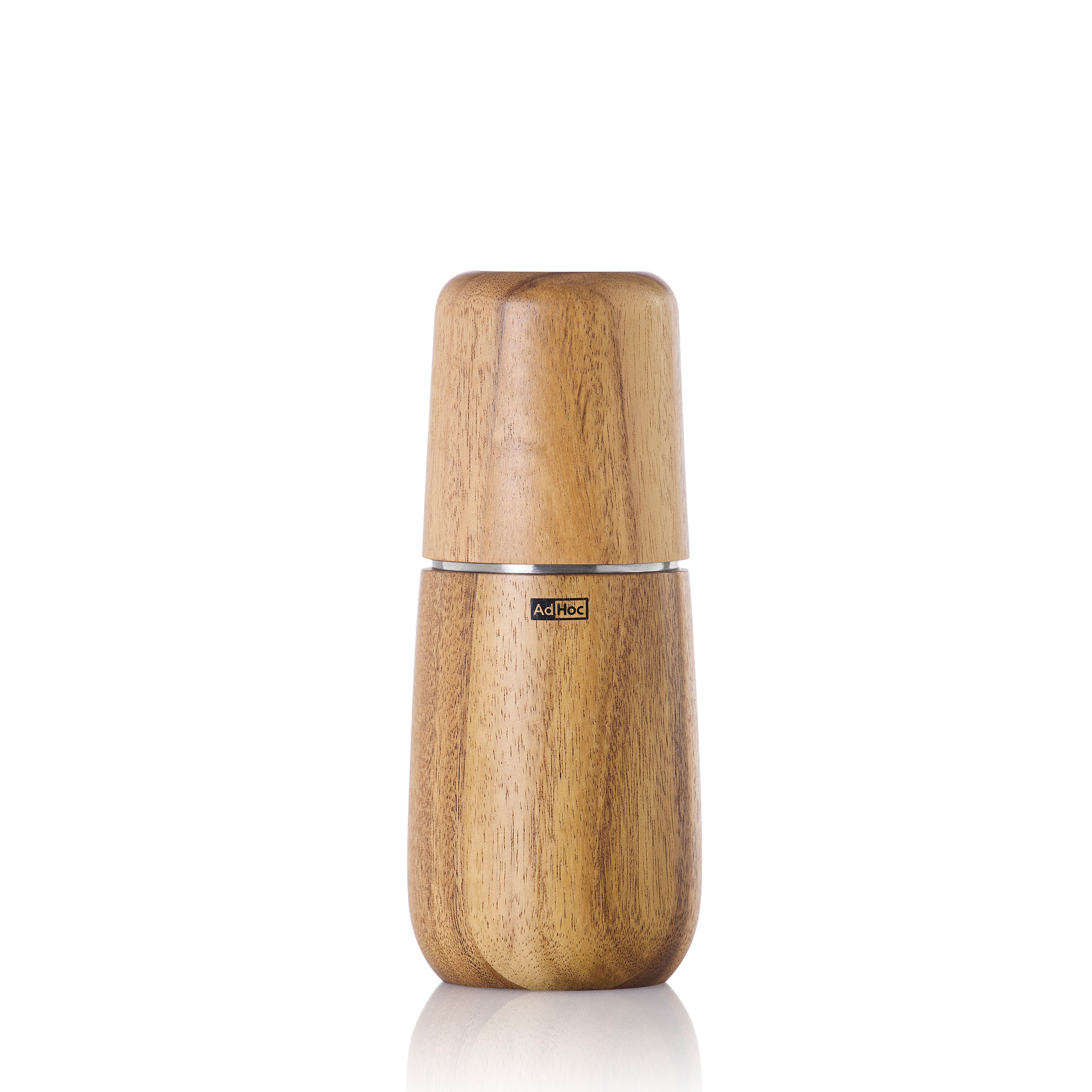 Mlynček na korenie a soľ AdHoc Yono vyrobený z dreva v prírodnej farbe a nerezovej ocele, s patentovaným keramickým mlecím mechanizmom CeraCut®.