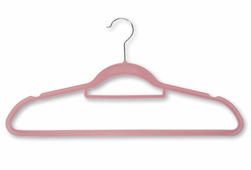 Wieszaki garderobowe w kolorze różowym z wykończeniem antypoślizgowym o szerokości 45,5 cm to praktyczny i stylowy dodatek do każdej szafy. przeczytaj całość