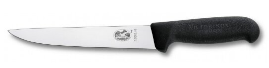 Nárezový nôž Victorinox Sticking Knife Black Fibrox vhodný na krájanie mäsa, šunky, najmä pre mäsiarov.Má pevnú čepeľ s hladkou hranou s dĺžkou 18 cm z ušľachtilej nehrdzavejúcej ocele. Má čiernu rukoväť z plastového materiálu Fibrox, ktorý bol prelomovým pre Victorinox. Možno ju sterilizovať do...