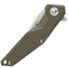 Rukoväť je vyrobená z textúrovaného materiálu G10 zelenej farby, s dierkou na šnúrku a sponou na vrecká.