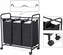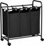 Songmics Koš na tříděné prádlo 3x44l, pojízdný, se třemi koši, černý