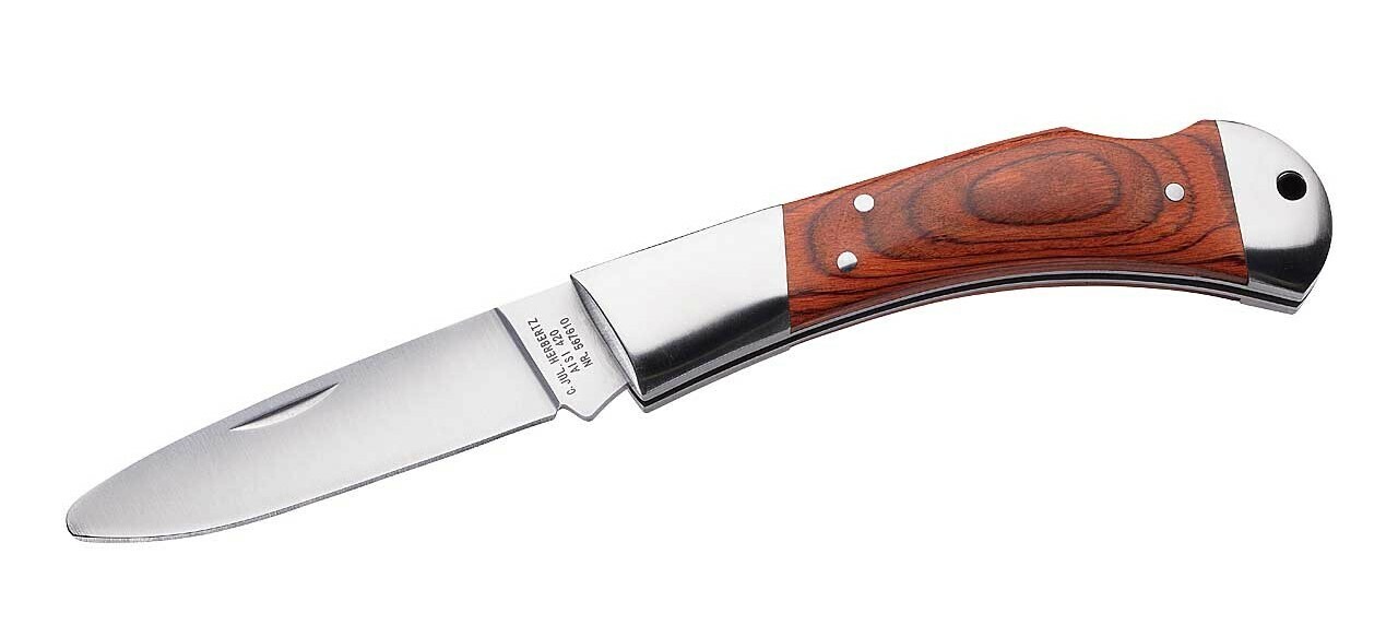 Klasický detský zatvárací nôž Herbertz 567610 má čepeľ s hladkou hranou z nehrdzavejúcej ocele AISI 420 so zaoblenou špičkou. Otvára sa manuálne (nail nick) a zaisťuje ju zadný zámok Backlock.Rukoväť je z kombinácie dreva Pakka a nehrdzavejúcej ocele. S dierkou na šnúrku.  przeczytaj całość
