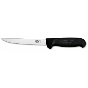 Vykosťovací nôž s čiernou fibroxovou rukoväťou. Vynájdenie plastovej rukoväte Fibrox znamenalo pre Victorinox skutočný prielom. Je založená na najmodernejších ergonomických poznatkoch a užívateľovi poskytuje optimálnu ochranu. Všetky fibroxové rukoväte je možné sterilizovať až do teploty 150°C a zodpovedajú požiadavkam smernice (ES) 1935/2004.