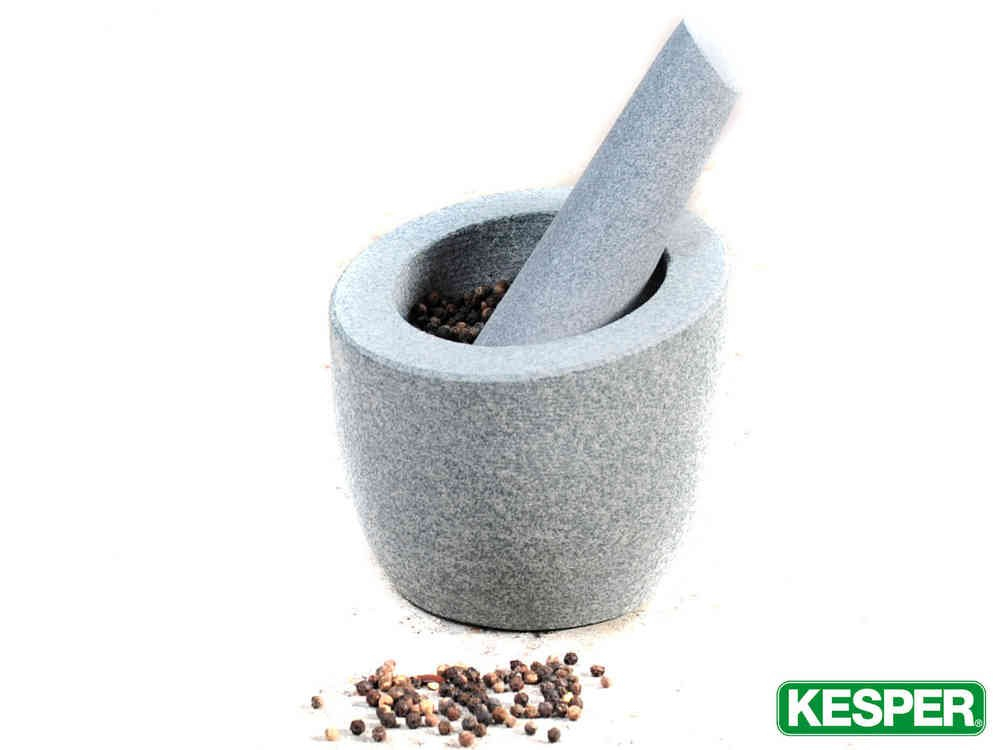 Průměr vrchní části: 13 cm, vnitřní průměr: 9,5 cm, průměr základny: 7,5 cm, výška: 10 cm, délka paličky: 13,5 cm, Materiál: žula. przeczytaj całość