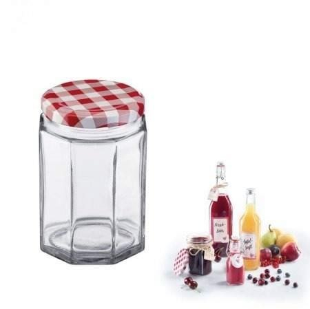Souprava šesti zavařovacích šestihranných sklenic Westmark se šroubovacími dekorovanými víčky pochází z Německa. przeczytaj całość