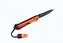 Rukoväť je z odolného materiálu G10 oranžovej farby, s jemnou textúrou pre pohodlný úchop. So sponou na vrecká a otvorom so šnúrkou a píšťalkou.