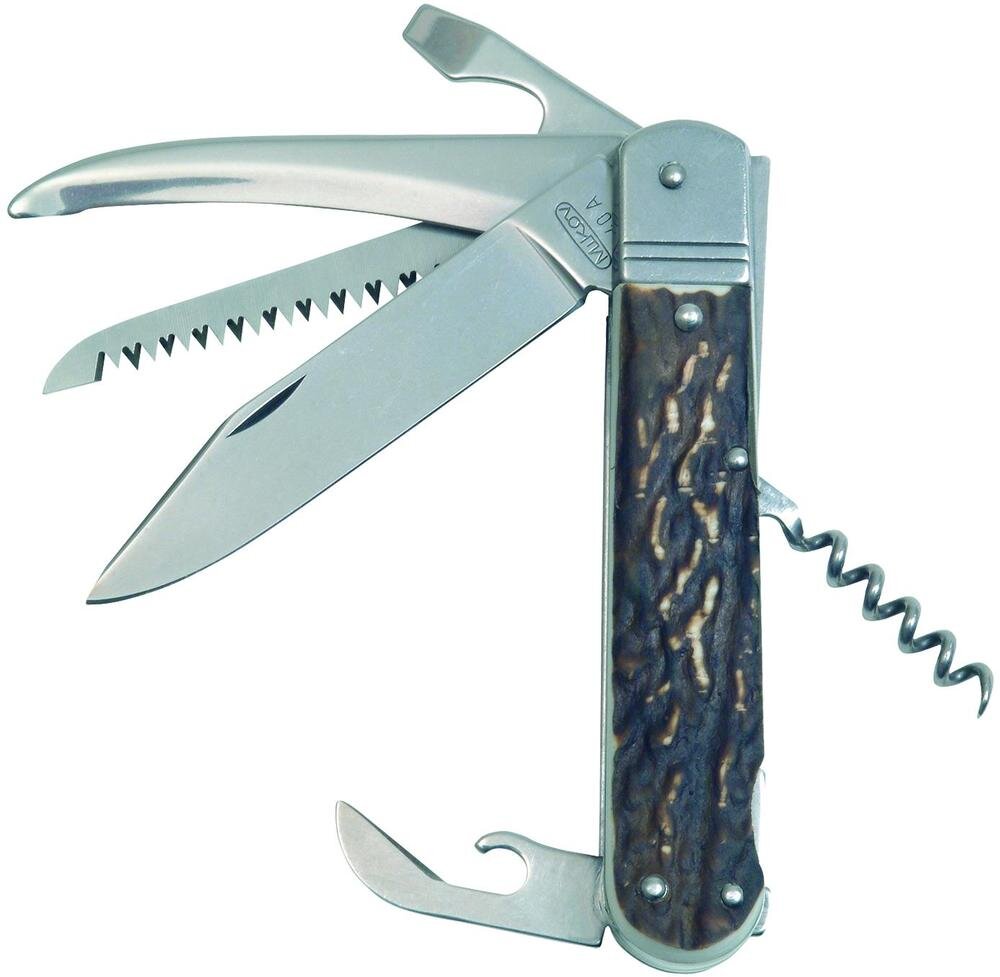 Posiada ostrze o gładkiej krawędzi, piłkę z podwójnym rzędem zębów, a pozostałe narzędzia wykonane są ze stali nierdzewnej 440A z szlifem stożkowym, co zapewnia łatwiejszą konserwację i lepsze właściwości tnące. Otwiera się ręcznie i zabezpieczone jest tylnym zapięciem Backlock. Rękojeść wykonana jest z wysokiej jakości imitacji poroża jelenia.