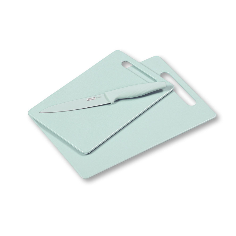 Tato sada od značky KESPER obsahuje dvě prkénka v moderní mint barvě a kvalitní nůž s ostrou a odolnou čepelí. przeczytaj całość