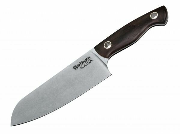 Úžitkový nôž Böker Manufaktur Solingen Saga Santoku je nôž, jeho meno znamená "Tri cnosti", je rovnako vhodný pre mäso, ryby a zeleninu. Vďaka širokej čepeli sa Santoku obzvlášť ľahko ovláda.