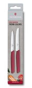 2-dielna súprava kuchynských nožov Victorinox 6.9096.2L4 Swiss Modern BERRY obsahuje jeden nôž so zúbkovanou hranou pre ľahké rezanie tvrdých a mäkkých potravín a jeden s hladkou hranou na čisté a hladké krájanie drobného ovocia a zeleniny.