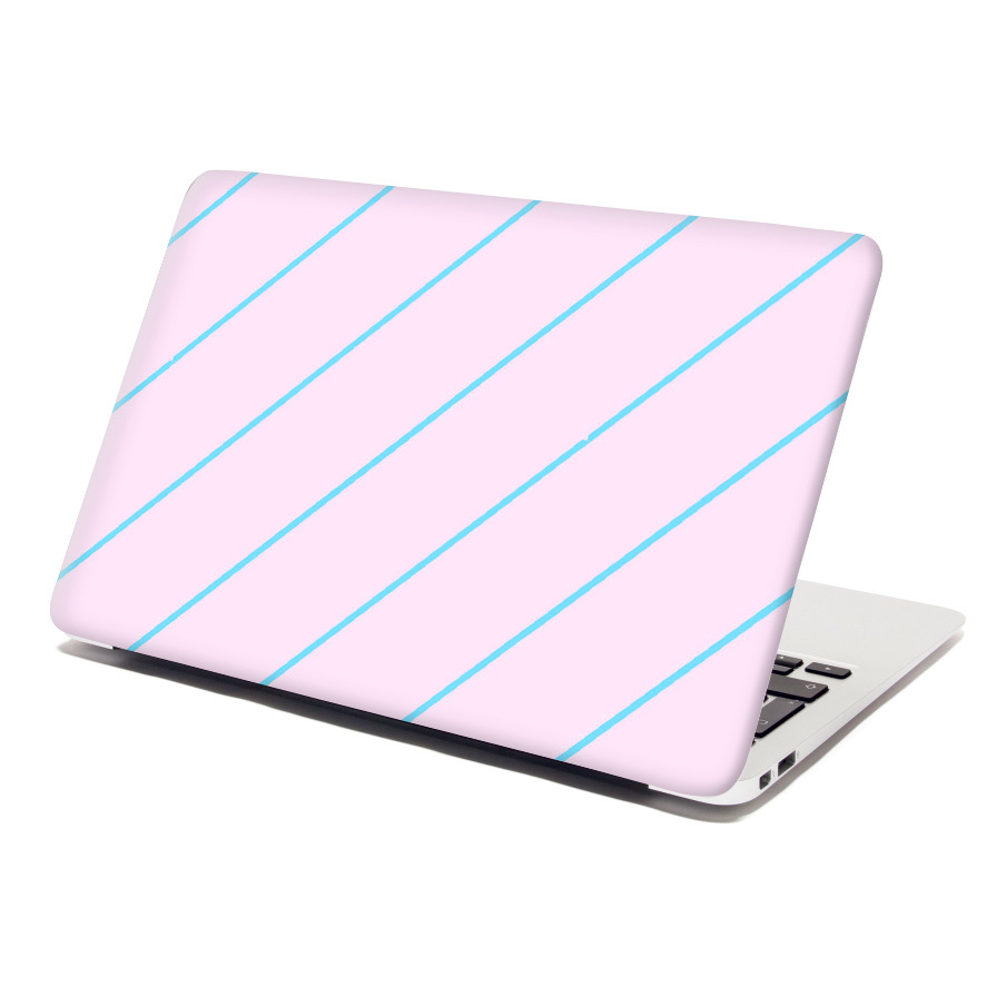 Samolepka na notebook Modré pruhy na růžové: 29x20 cm
