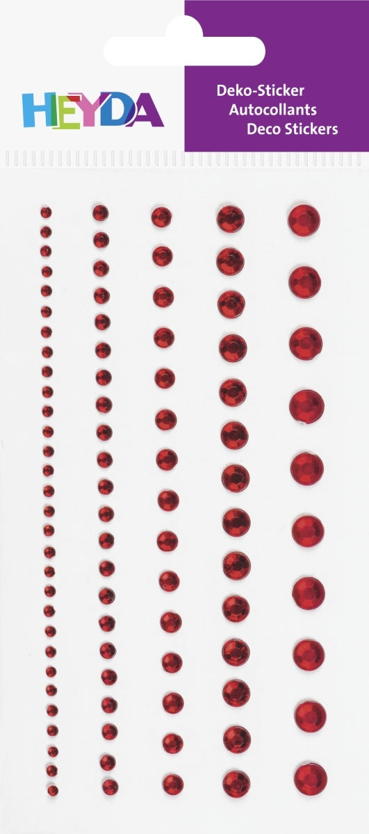 Dekorační kamínek štrasový samolepicí 95ks - červený, 5 velikostí, průměr 2mm až 6 mm