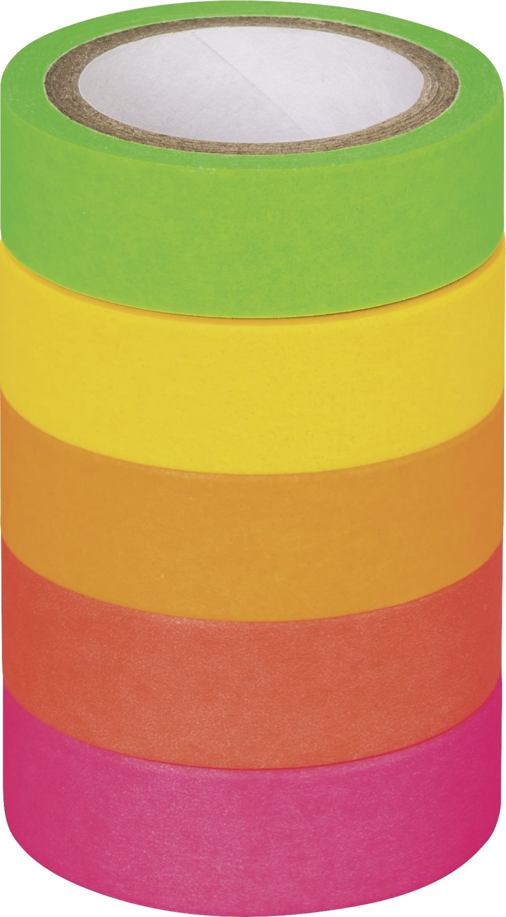 Páska lepicí papírová, 5ks - neon, matná: 1,2cm x 5m