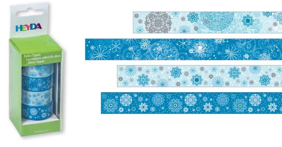 Páska lepicí papírová 4ks - vločky: 1,5cm x 5m