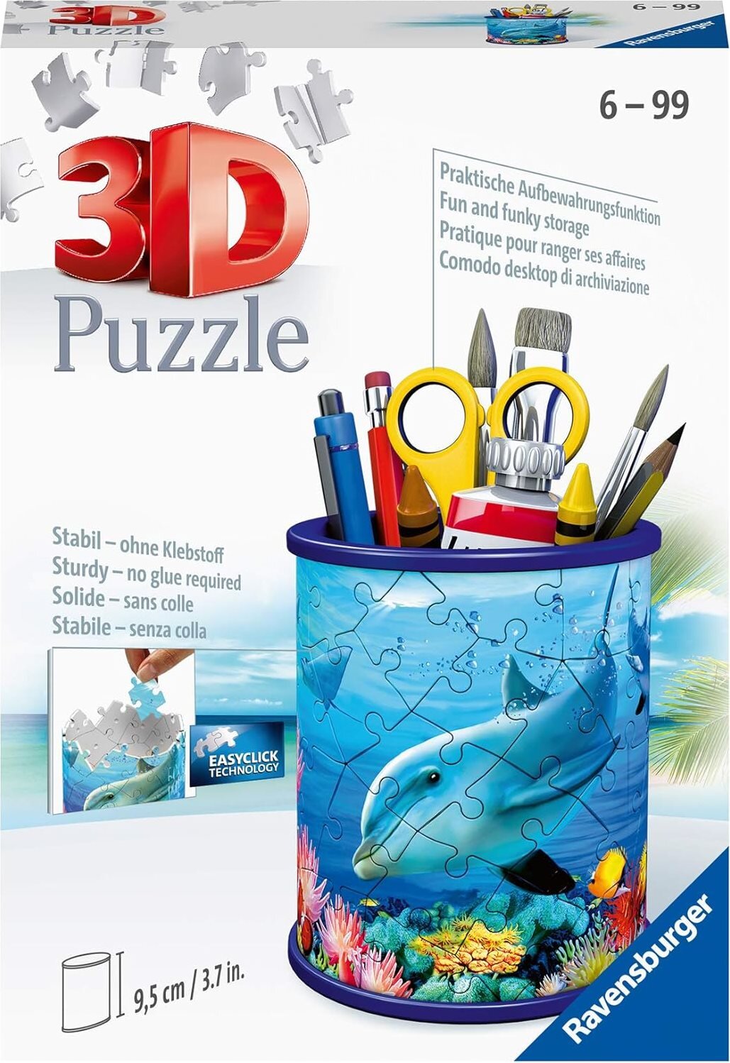 Praktyczny i dekoracyjny stojak marki RAVENSBURGER doskonale urozmaici Twoje biurko lub dziecięce biurko. Już żadnych porozrzucanych ołówków czy długopisów - wszystko znajdzie swoje miejsce w oryginalnym 3D puzzle stojaku.