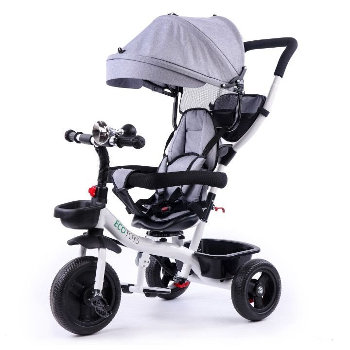 ECOTOYS Tříkolka se stříškou a vodící tyčí - šedá