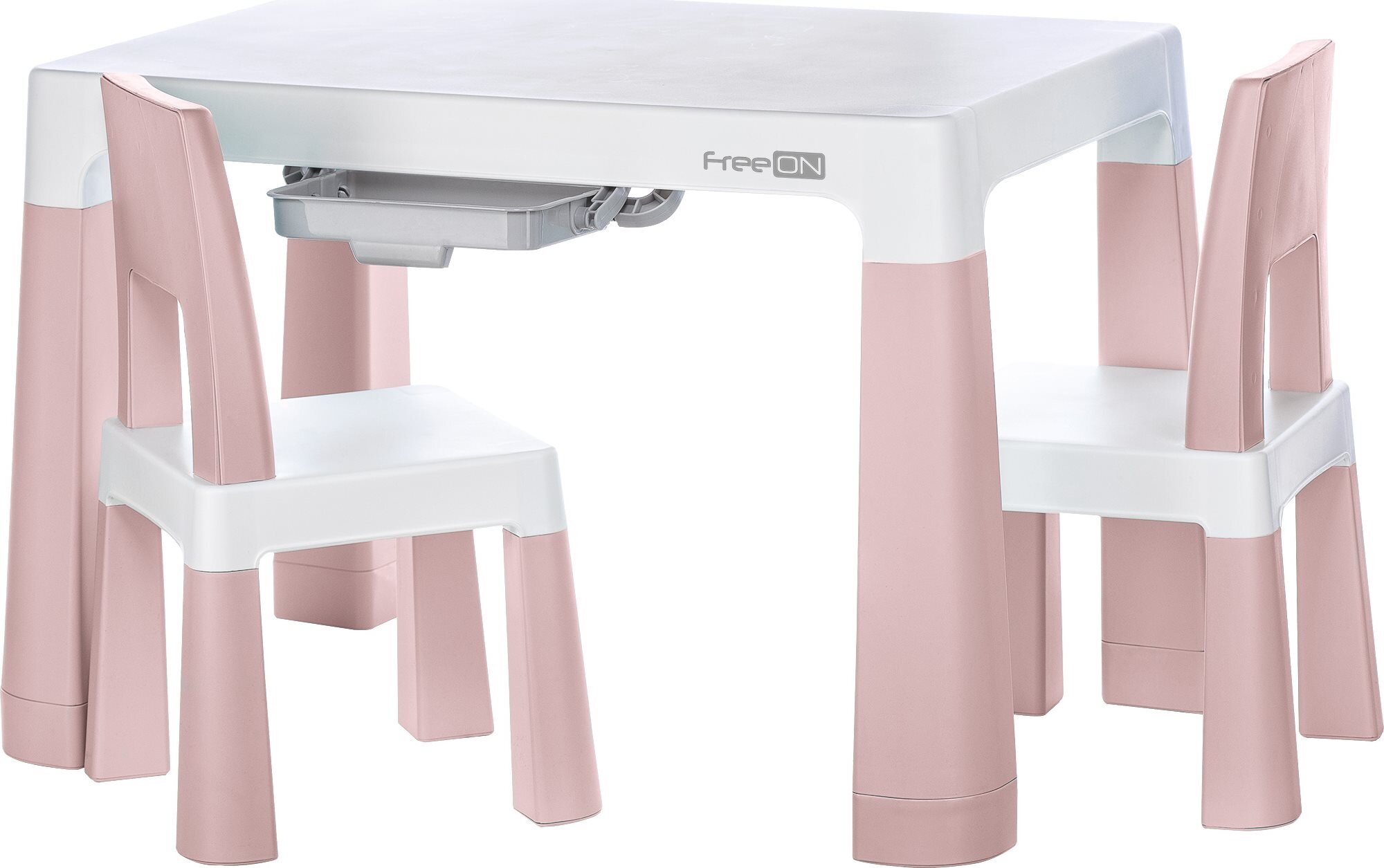 FREEON Plastový stolek s židlemi Neo, bílá,růžová