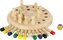 Zestaw zawiera: 24 figurki z oznaczeniem kolorystycznym, okrągłą planszę z otworami, kostkę.
