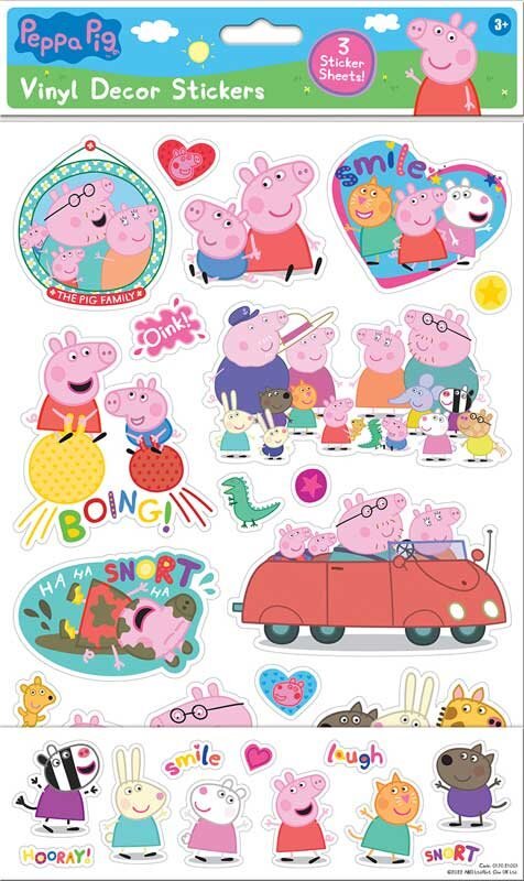 Vinylové samolepky s postavami ze seriálu Prasátko Peppa. balení obsahuje: 3 listy se samolepkami przeczytaj całość