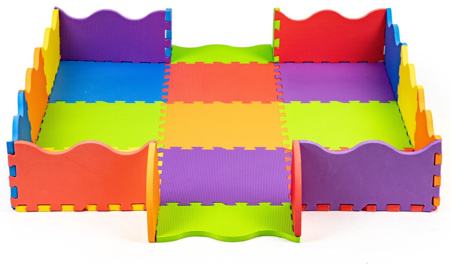 Pěnové puzzle s dílky ve veselých barvách pro děti od 3 let. Balení obsahuje 9 čtvercových dílků, 12 okrajových dílků a 4 rohové dílky. Bezpečná a měkká podložka je omyvatelná, tlumí hluk a izoluje od chladu, je proto ideální jako hrací koberec nejen do dětských pokojů. Tloušťka pěnového puzzle je 1,3 cm. Velikost jednoho dílu je 30 x 30 cm (měřeno od zubu po výřez)