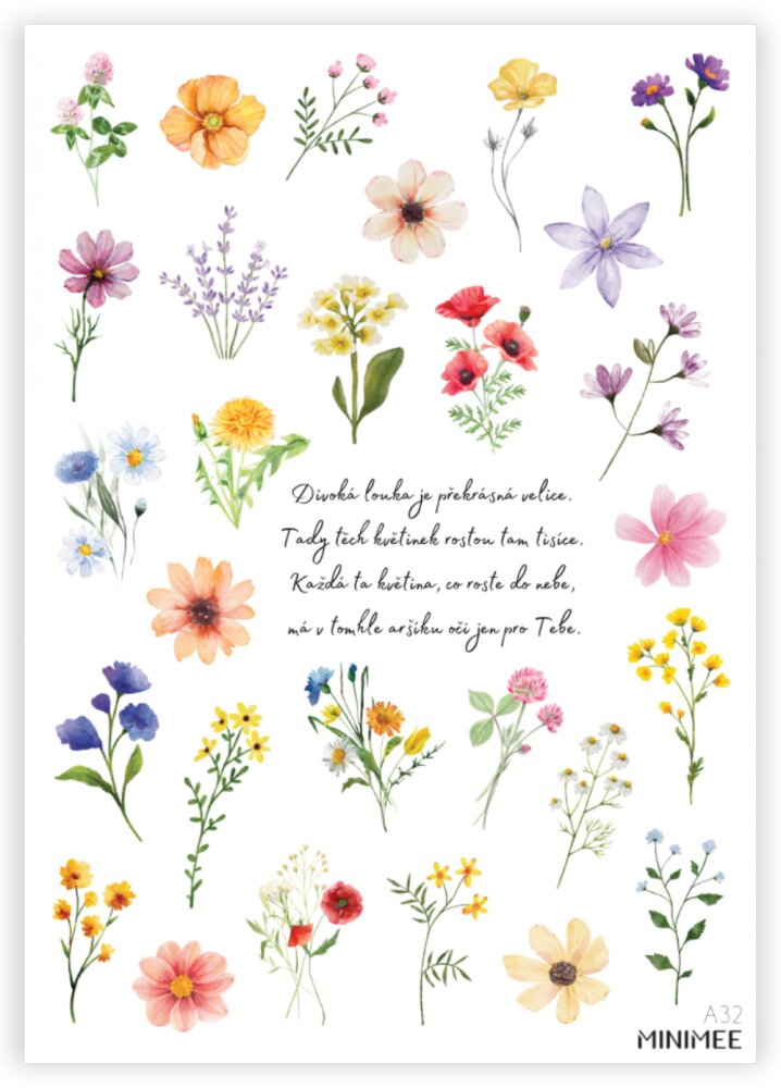 Krásné vyřezávané samolepky v aršíku A5, s motivy květin z divoké louky a autorskou básní.Vyrobeno v Česku. przeczytaj całość